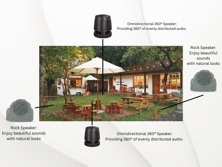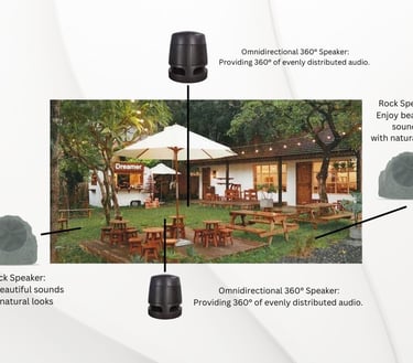 An outdoor Distributed Audio setup, enhancing your outdoor experience with your favorite music surrounding you.