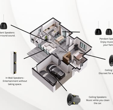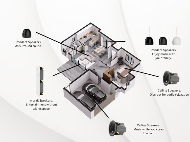 An indoor Distributed Audio setup, can be utilized in both commercial and residential spaces.